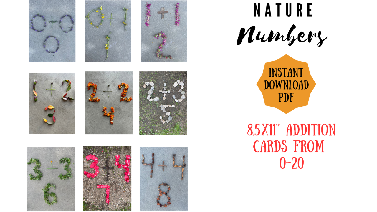 These Shapes cards are a great way to invite children on a learning adventure by bringing pieces of nature into your classroom and/or home learning space. The cards include a circle, a heart, a square, an oval, a rectangle, a triangle, and a semi-circle.